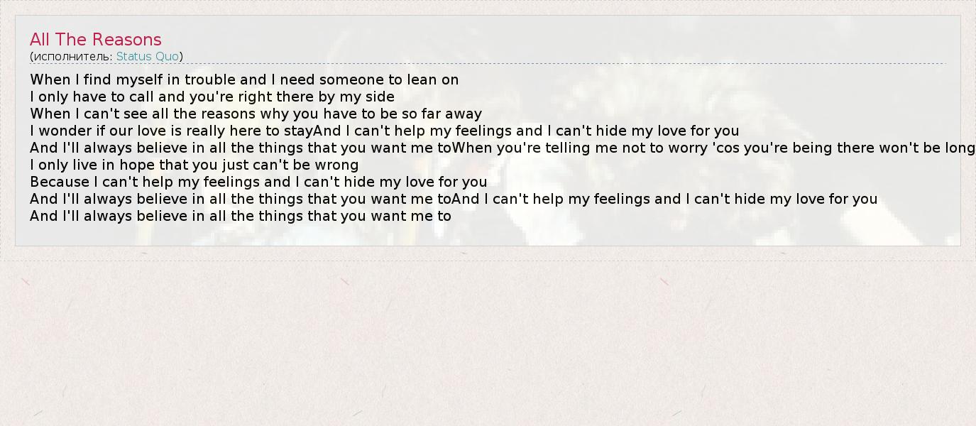 А как ты думаешь, о чем песня "All The Reasons" ?