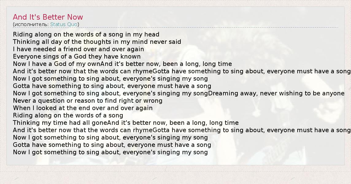 А как ты думаешь, о чем песня "And It's Better Now" ?