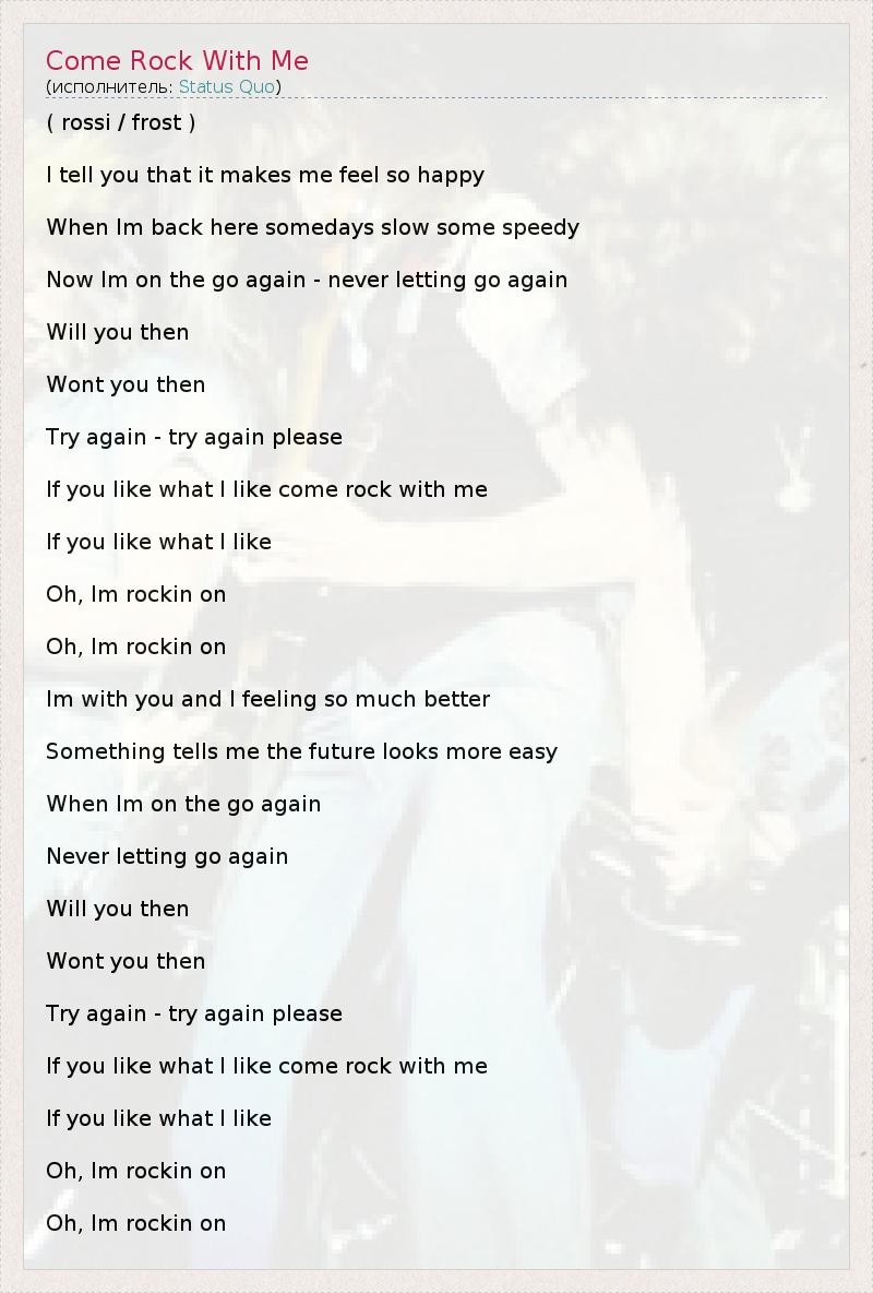 А как ты думаешь, о чем песня "Come Rock With Me" ?
