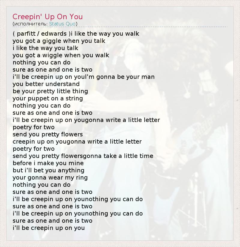 А как ты думаешь, о чем песня "Creepin' Up On You" ?