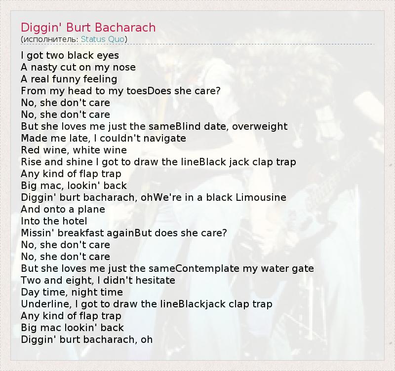 ГлавнаяИсполнителиStatus QuoDiggin' Burt Bacharach