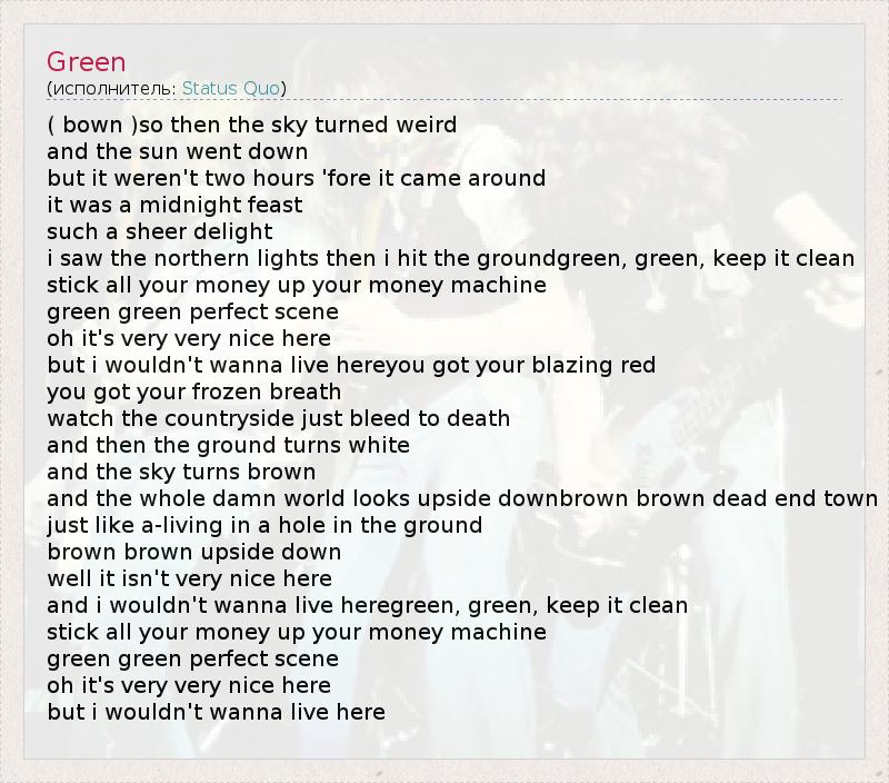 i saw the northern lights then i hit the groundgreen, green, keep it clean