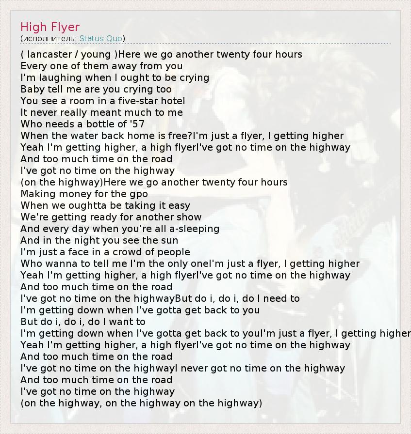 I'm getting down when I've gotta get back to youI'm just a flyer, I getting higher