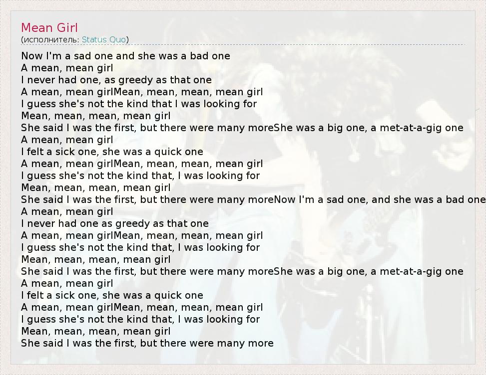 А как ты думаешь, о чем песня "Mean Girl" ?