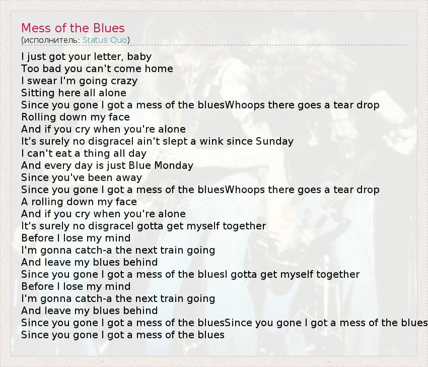 А как ты думаешь, о чем песня "Mess of the Blues" ?