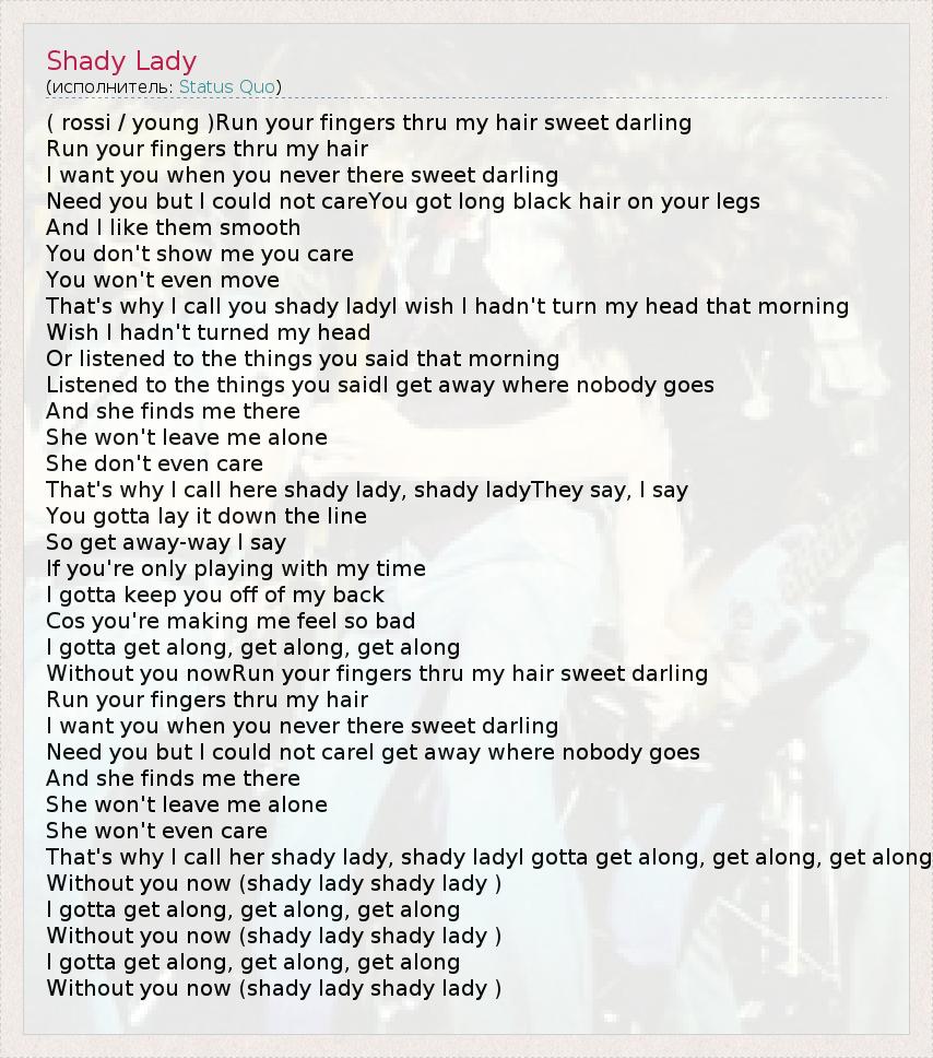 А как ты думаешь, о чем песня "Shady Lady" ?