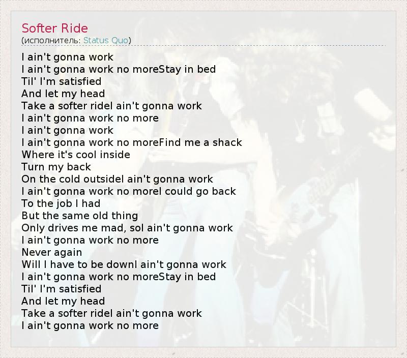 Take a softer rideI ain't gonna work