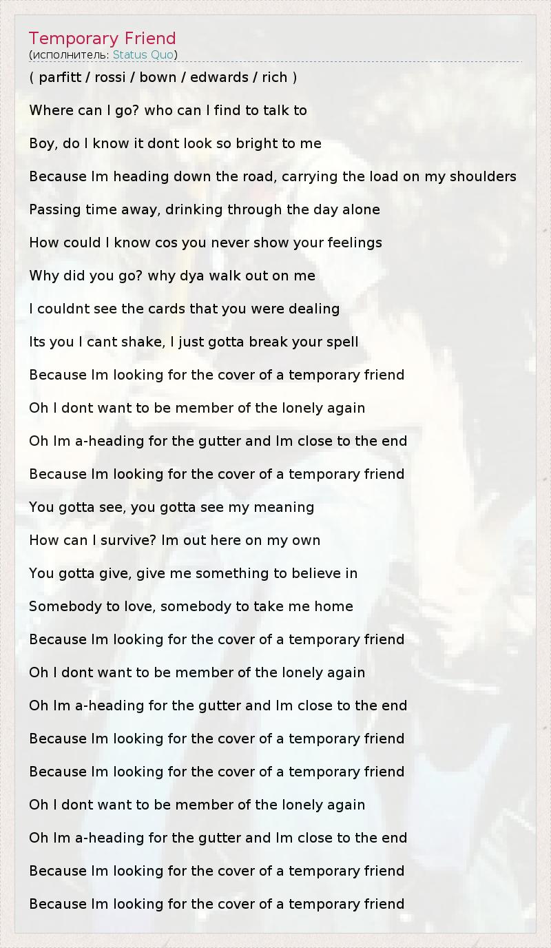 А как ты думаешь, о чем песня "Temporary Friend" ?