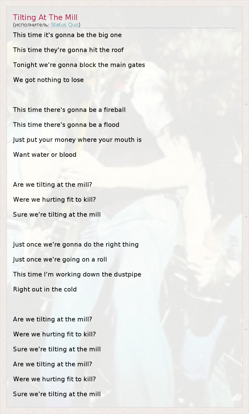 А как ты думаешь, о чем песня "Tilting At The Mill" ?