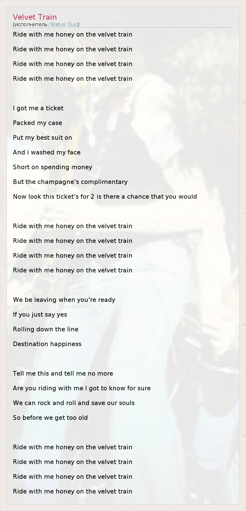 А как ты думаешь, о чем песня "Velvet Train" ?