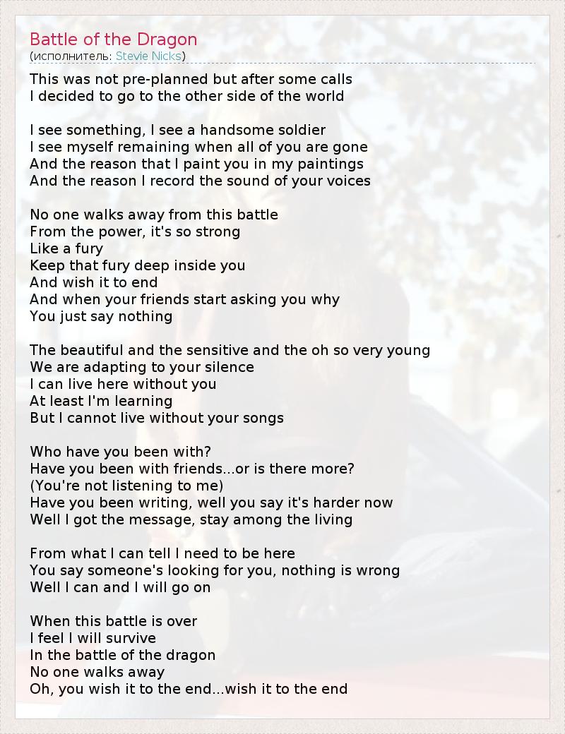 А как ты думаешь, о чем песня "Battle of the Dragon" ?