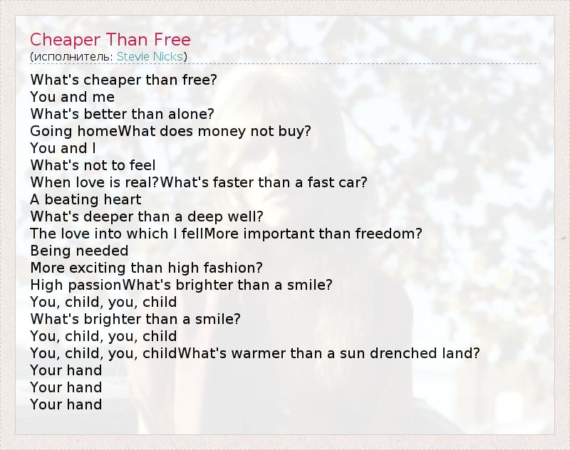 А как ты думаешь, о чем песня "Cheaper Than Free" ?