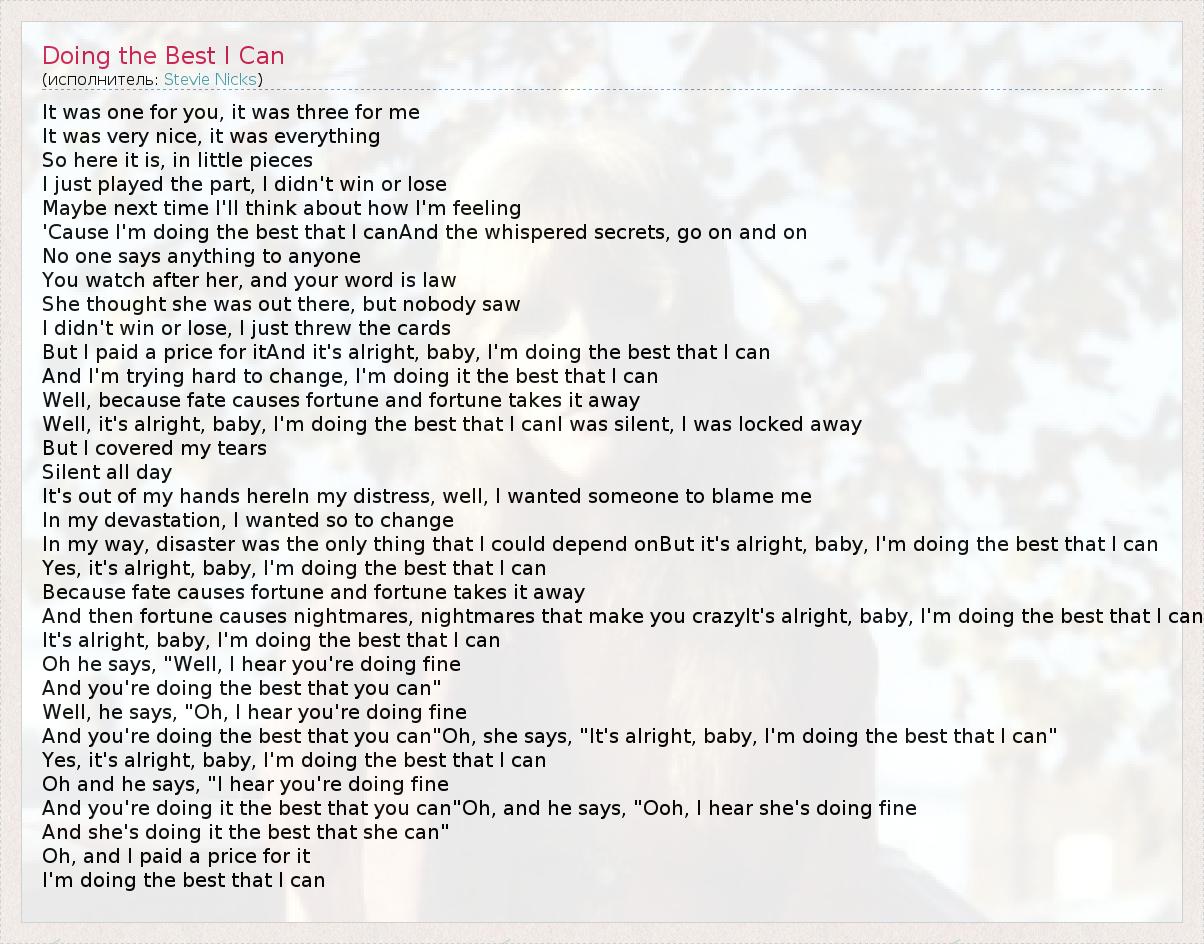 А как ты думаешь, о чем песня "Doing the Best I Can" ?