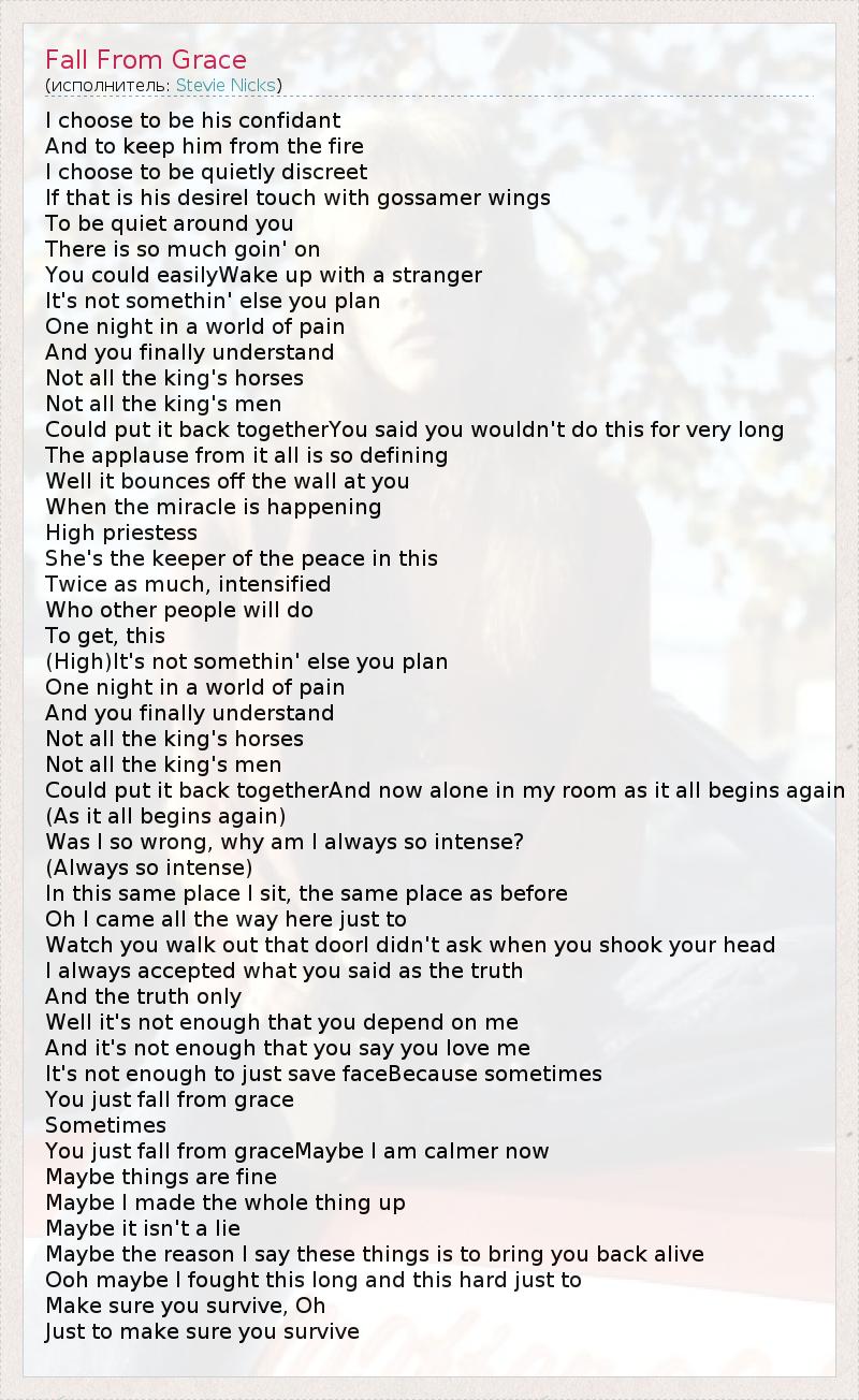 А как ты думаешь, о чем песня "Fall From Grace" ?