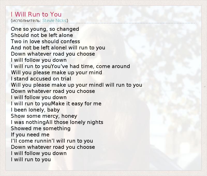 А как ты думаешь, о чем песня "I Will Run to You" ?