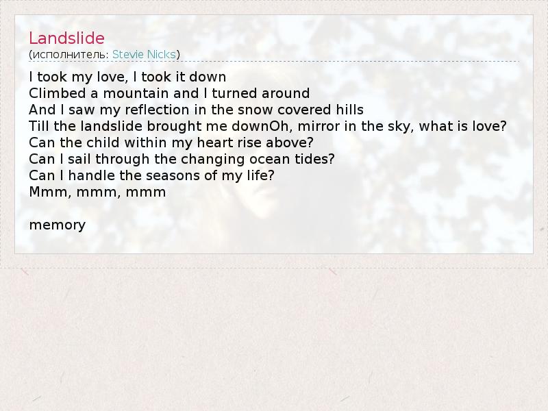 А как ты думаешь, о чем песня "Landslide" ?
