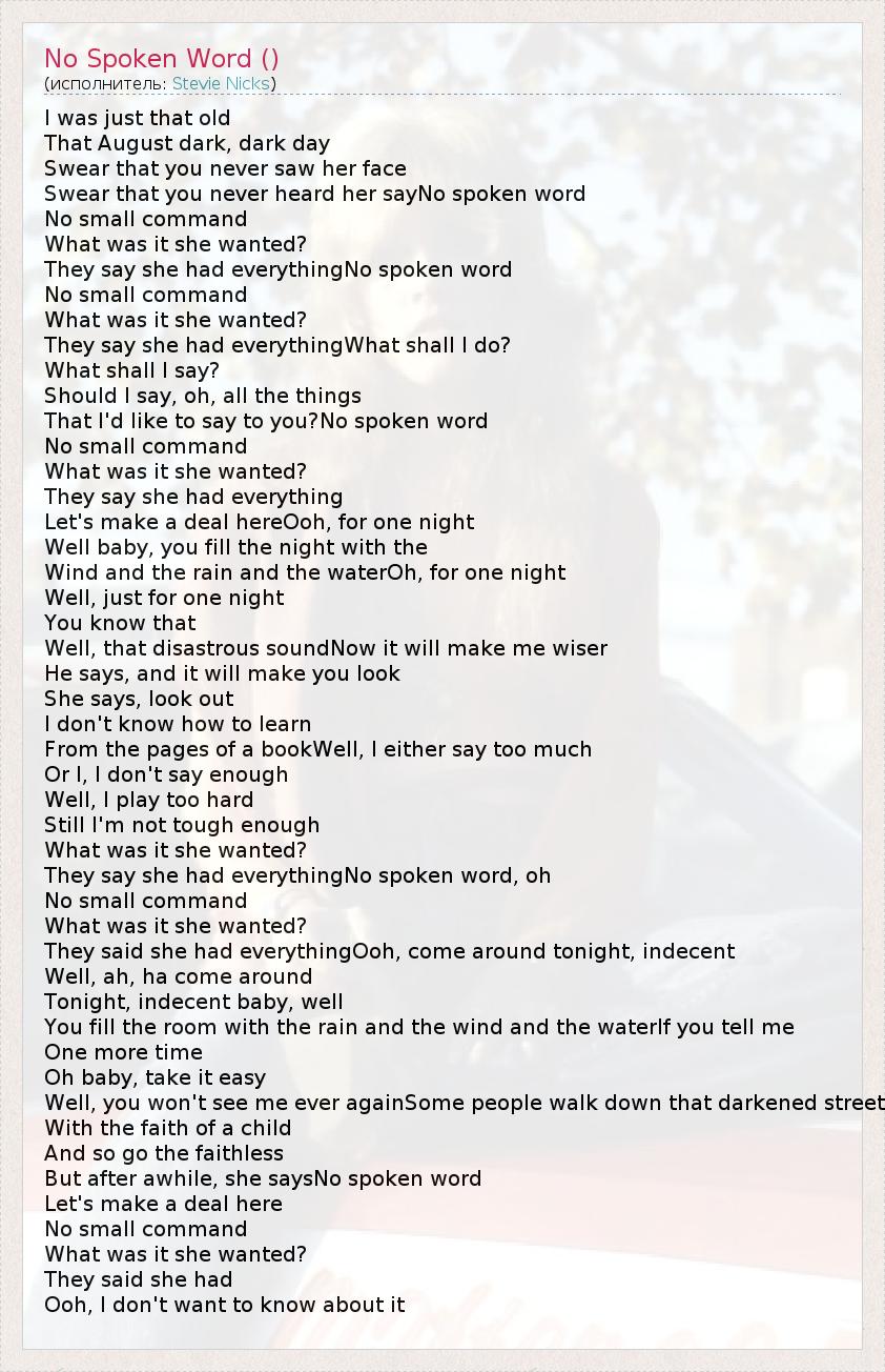 А как ты думаешь, о чем песня "No Spoken Word ()" ?