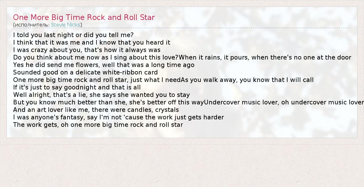 А как ты думаешь, о чем песня "One More Big Time Rock and Roll Star" ?