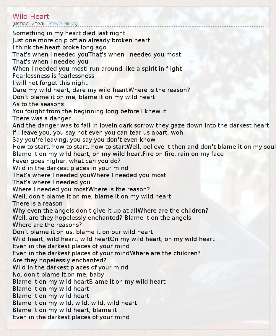 А как ты думаешь, о чем песня "Wild Heart" ?
