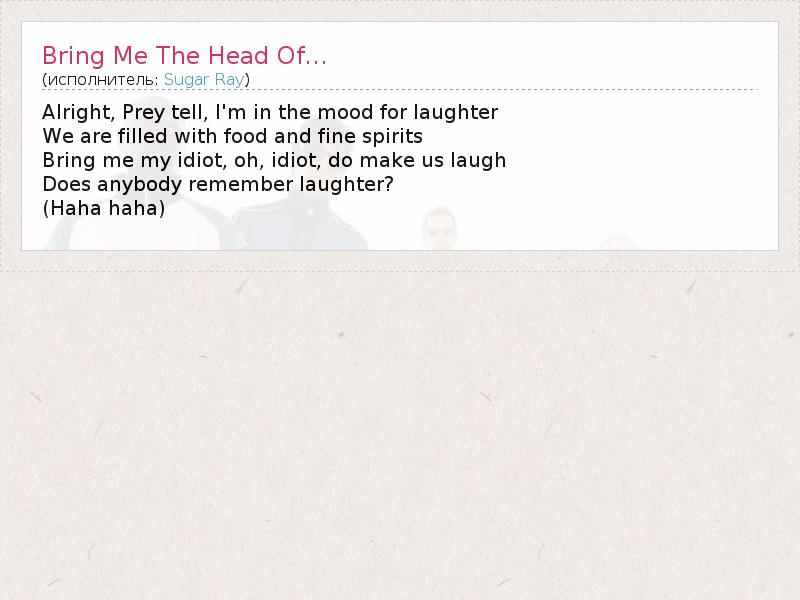 А как ты думаешь, о чем песня "Bring Me The Head Of..." ?