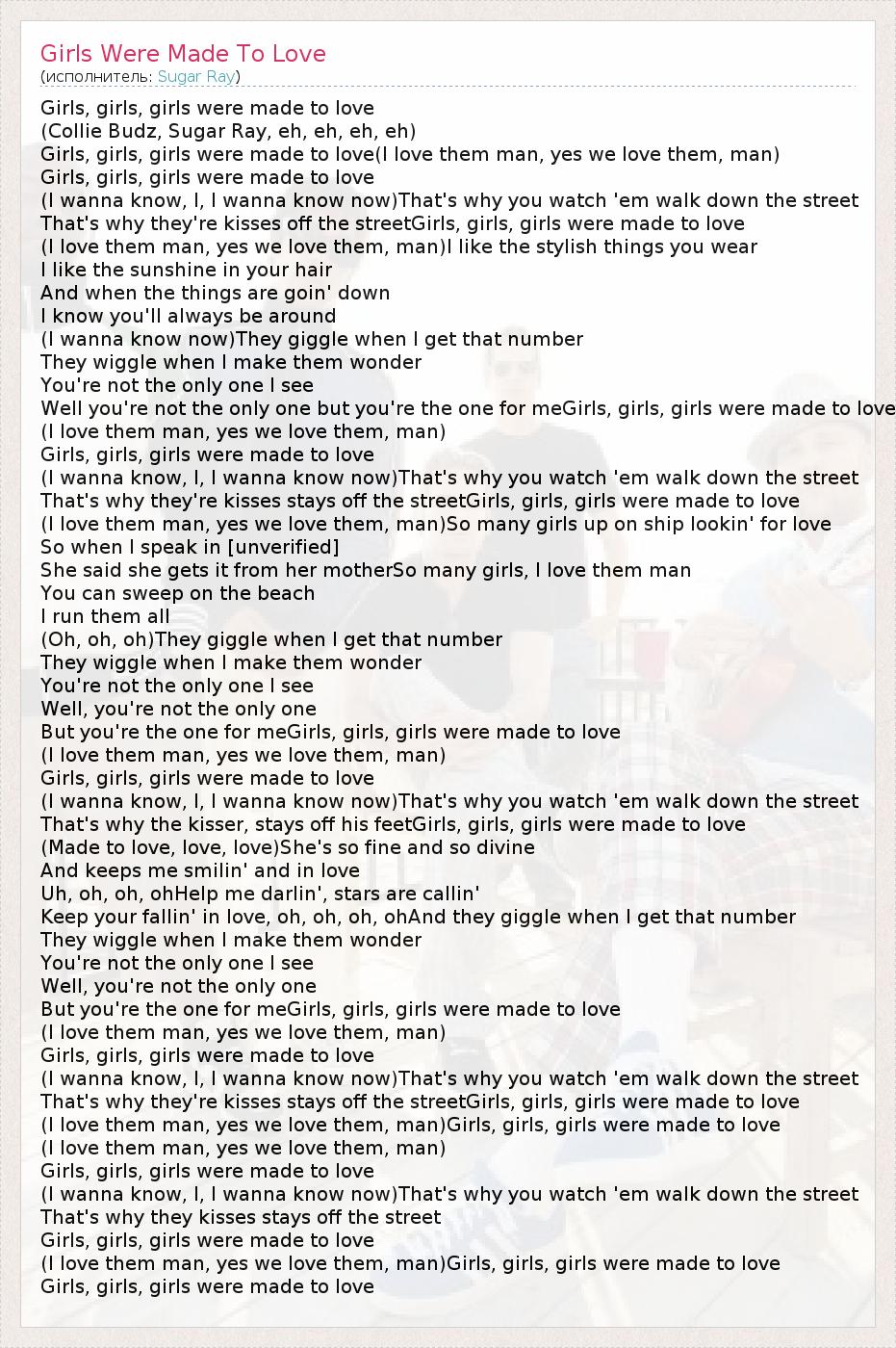 А как ты думаешь, о чем песня "Girls Were Made To Love" ?
