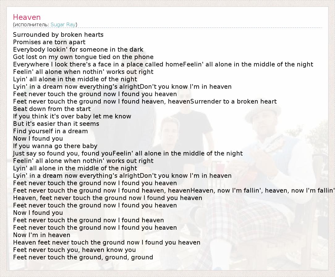 Feet never touch the ground now I found heaven, heavenSurrender to a broken heart