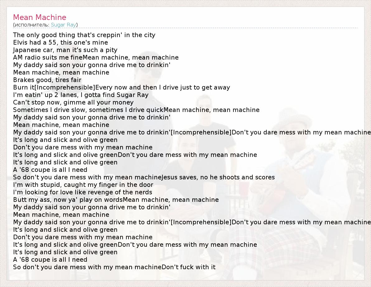 А как ты думаешь, о чем песня "Mean Machine" ?