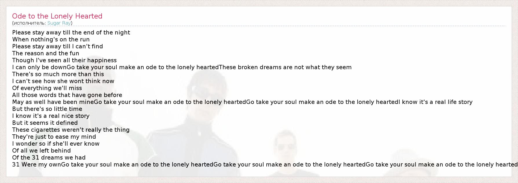 А как ты думаешь, о чем песня "Ode to the Lonely Hearted" ?