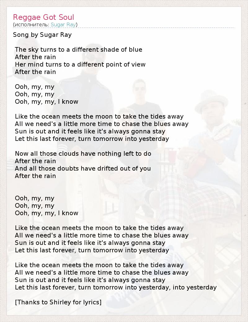 А как ты думаешь, о чем песня "Reggae Got Soul" ?