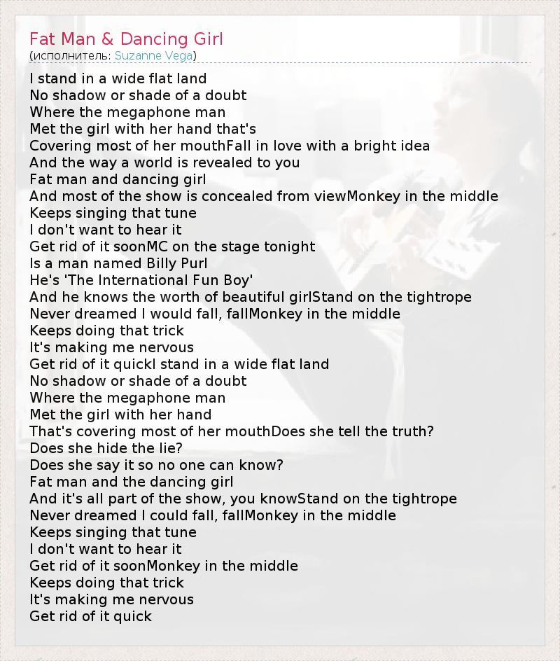 А как ты думаешь, о чем песня "Fat Man & Dancing Girl" ?