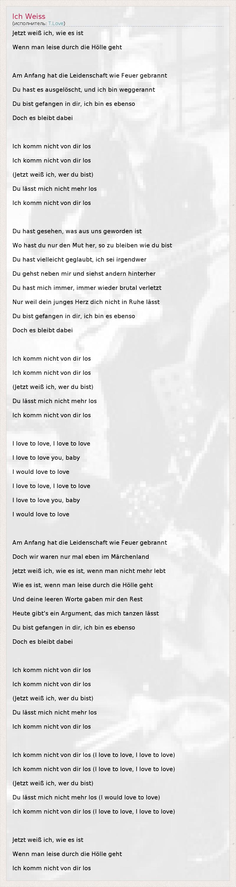 А как ты думаешь, о чем песня "Ich Weiss" ?