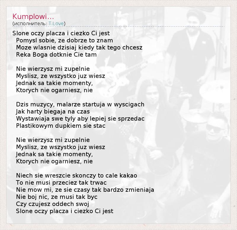 А как ты думаешь, о чем песня "Kumplowi..." ?