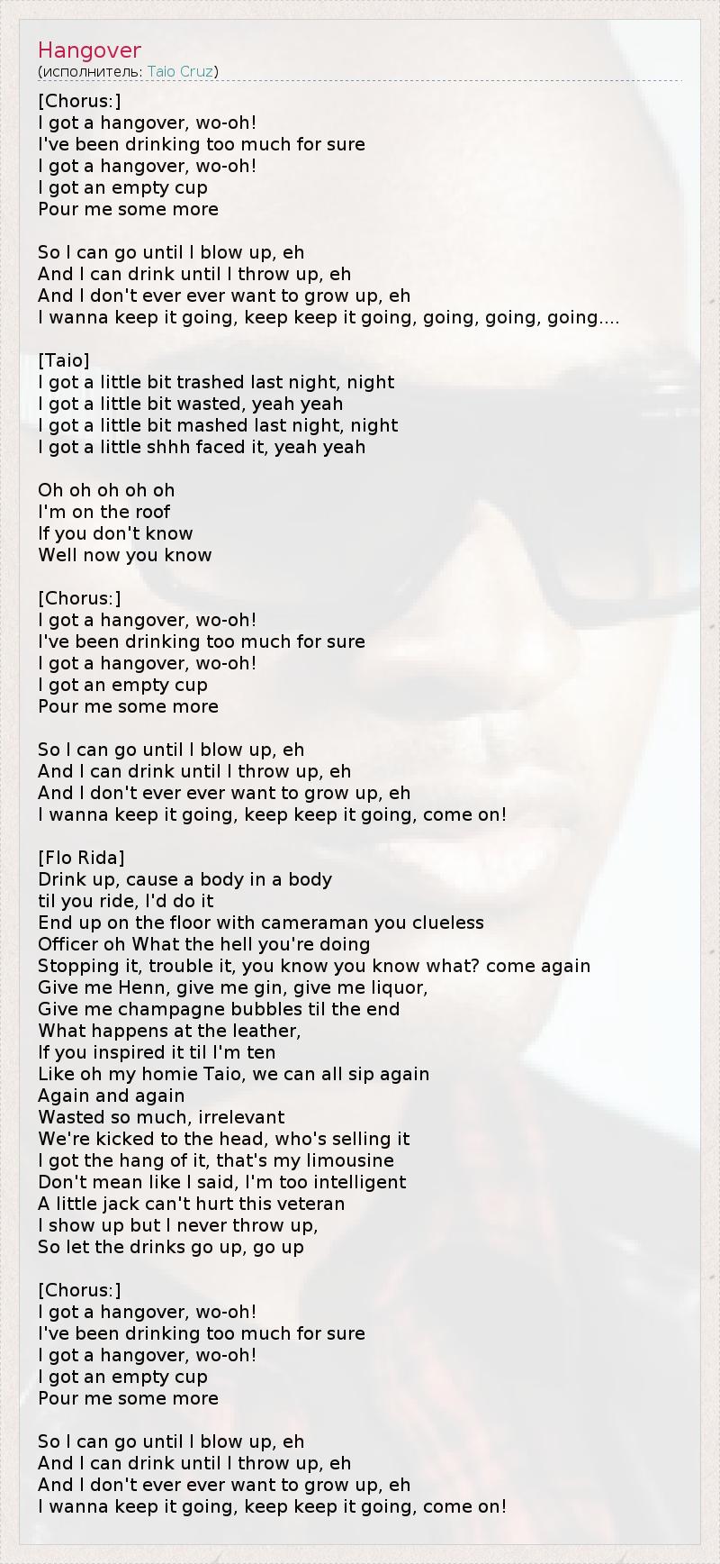 А как ты думаешь, о чем песня "Hangover" ?