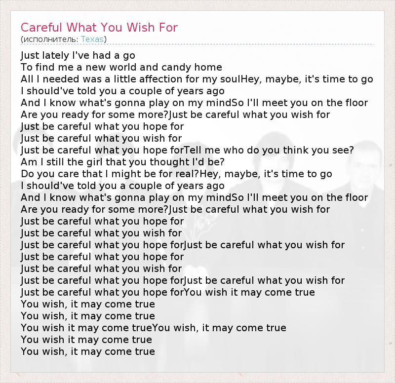 А как ты думаешь, о чем песня "Careful What You Wish For" ?
