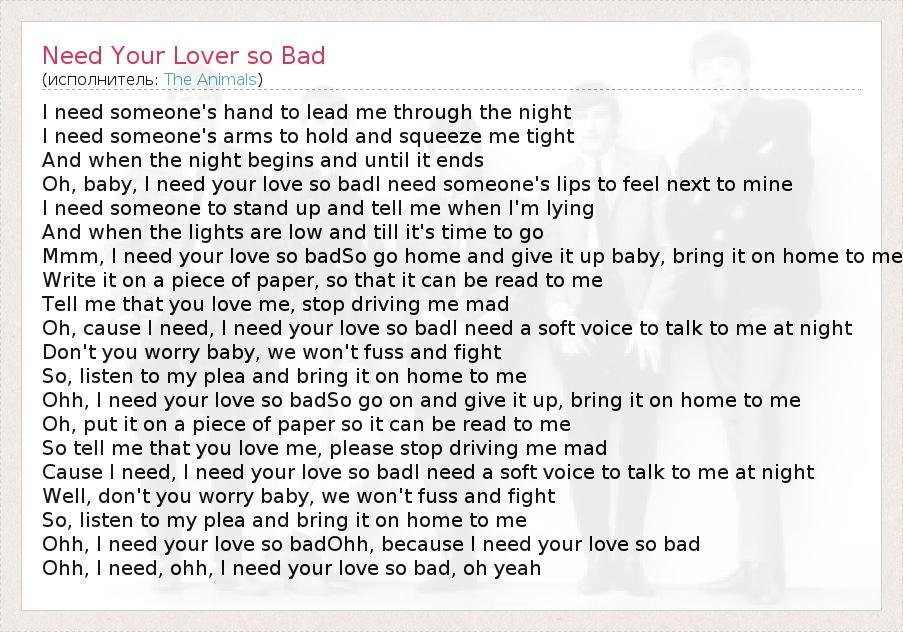 А как ты думаешь, о чем песня "Need Your Lover so Bad" ?
