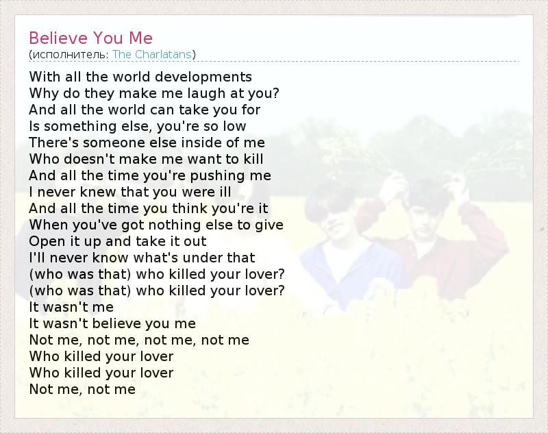 А как ты думаешь, о чем песня "Believe You Me" ?