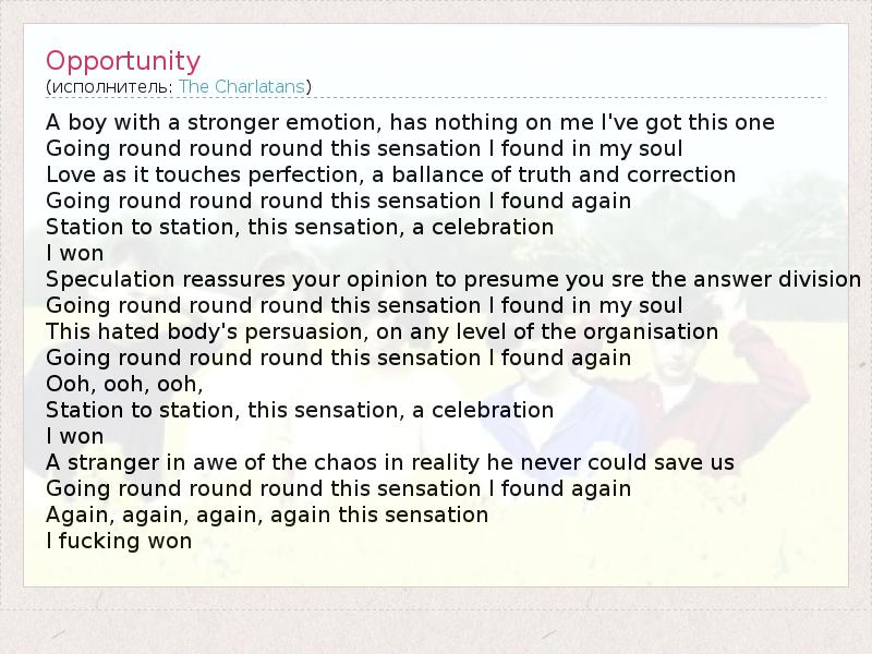 А как ты думаешь, о чем песня "Opportunity" ?