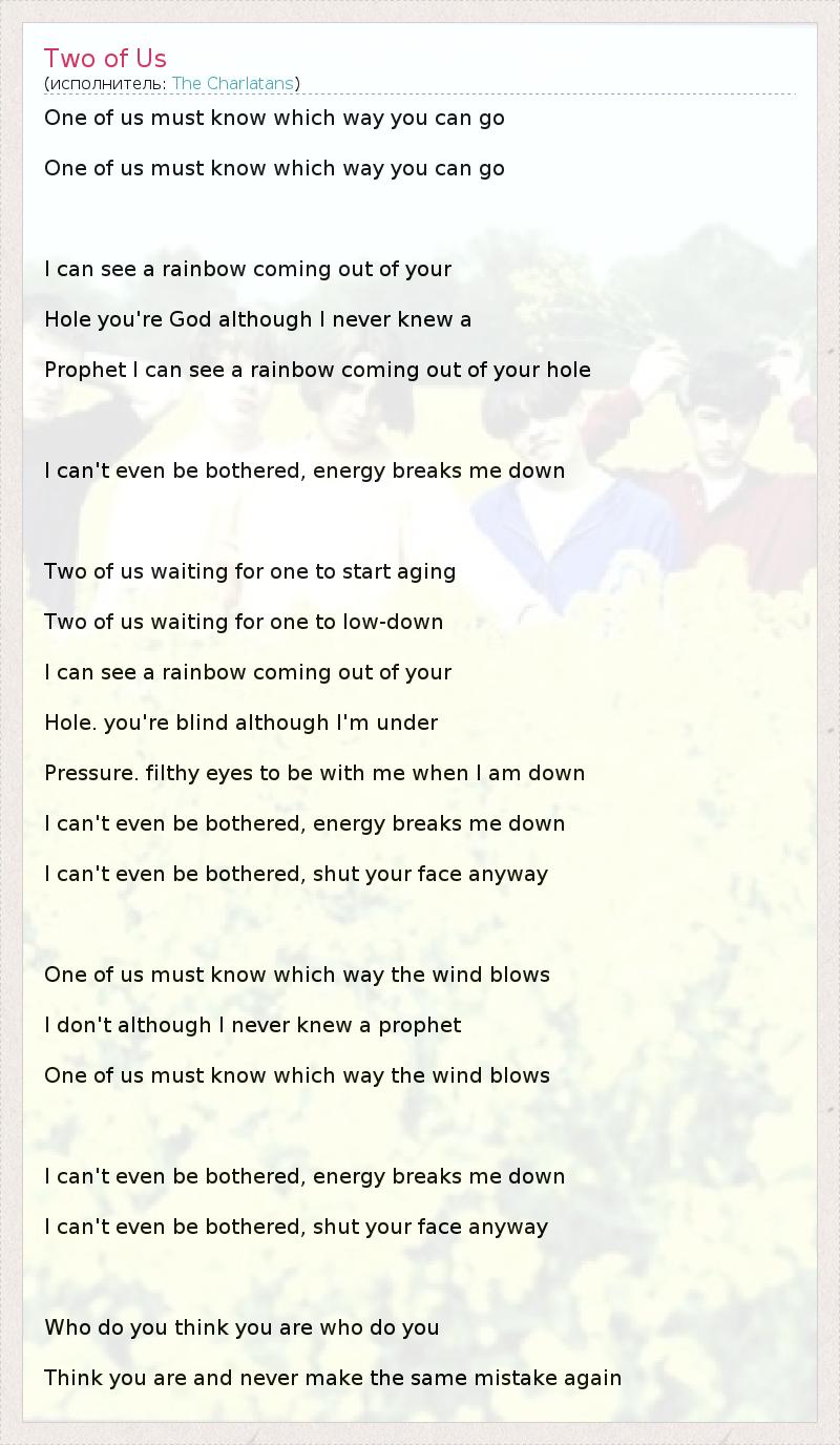 Это интересно:1). Все начиналось в 1988-89 годах. В маленьком городке Нортвич, что неподалеку от Манчестера (настоящий музыкальный центр Британии тех лет), молодой парень по имени Роб Коллинз собрал вокруг себя группу, группу таких же молодых парней. Вот так выглядел первый состав группы: Baz Kettley - вокал, гитара; Rob Collins - клавишные; Jon Brookes - ударные; Martin Blunt - бас. The Charlatans, а проще "шарлатаны", решили стать... продолжение