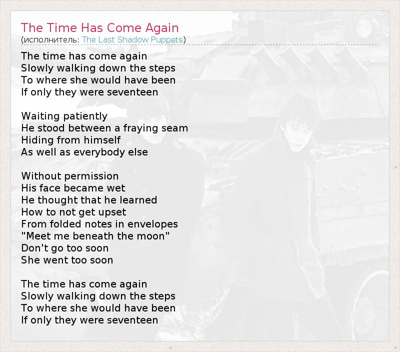 А как ты думаешь, о чем песня "The Time Has Come Again" ?