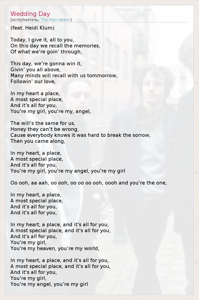 А как ты думаешь, о чем песня "Wedding Day" ?