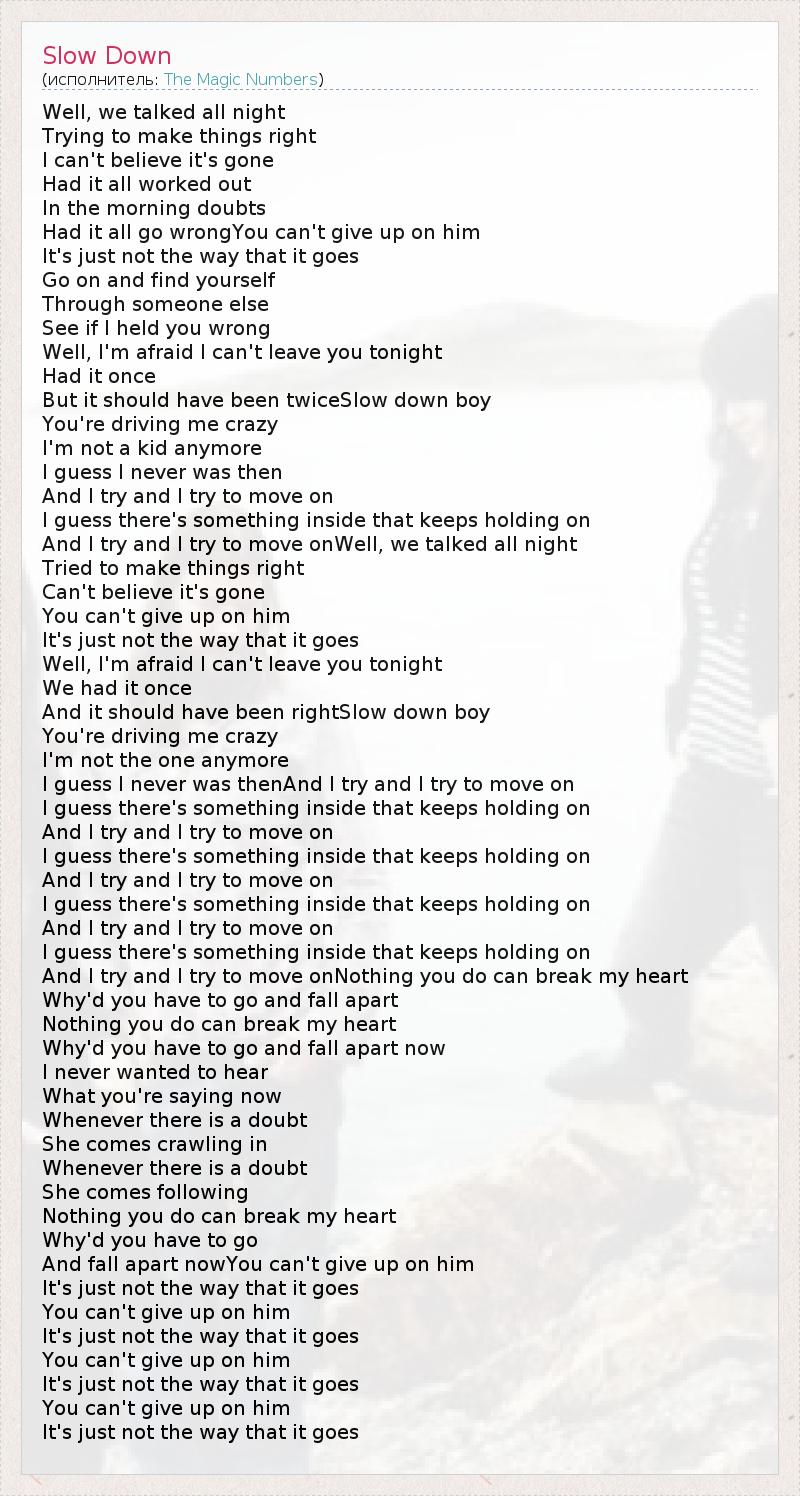 А как ты думаешь, о чем песня "Slow Down" ?