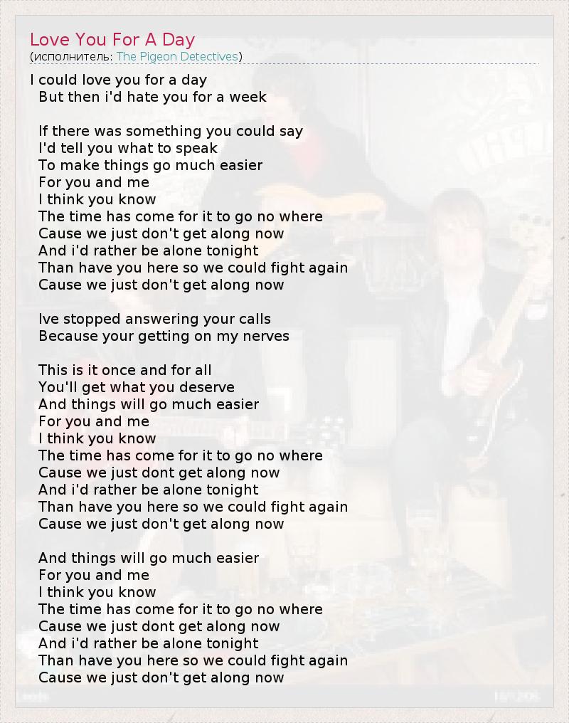 А как ты думаешь, о чем песня "Love You For A Day" ?
