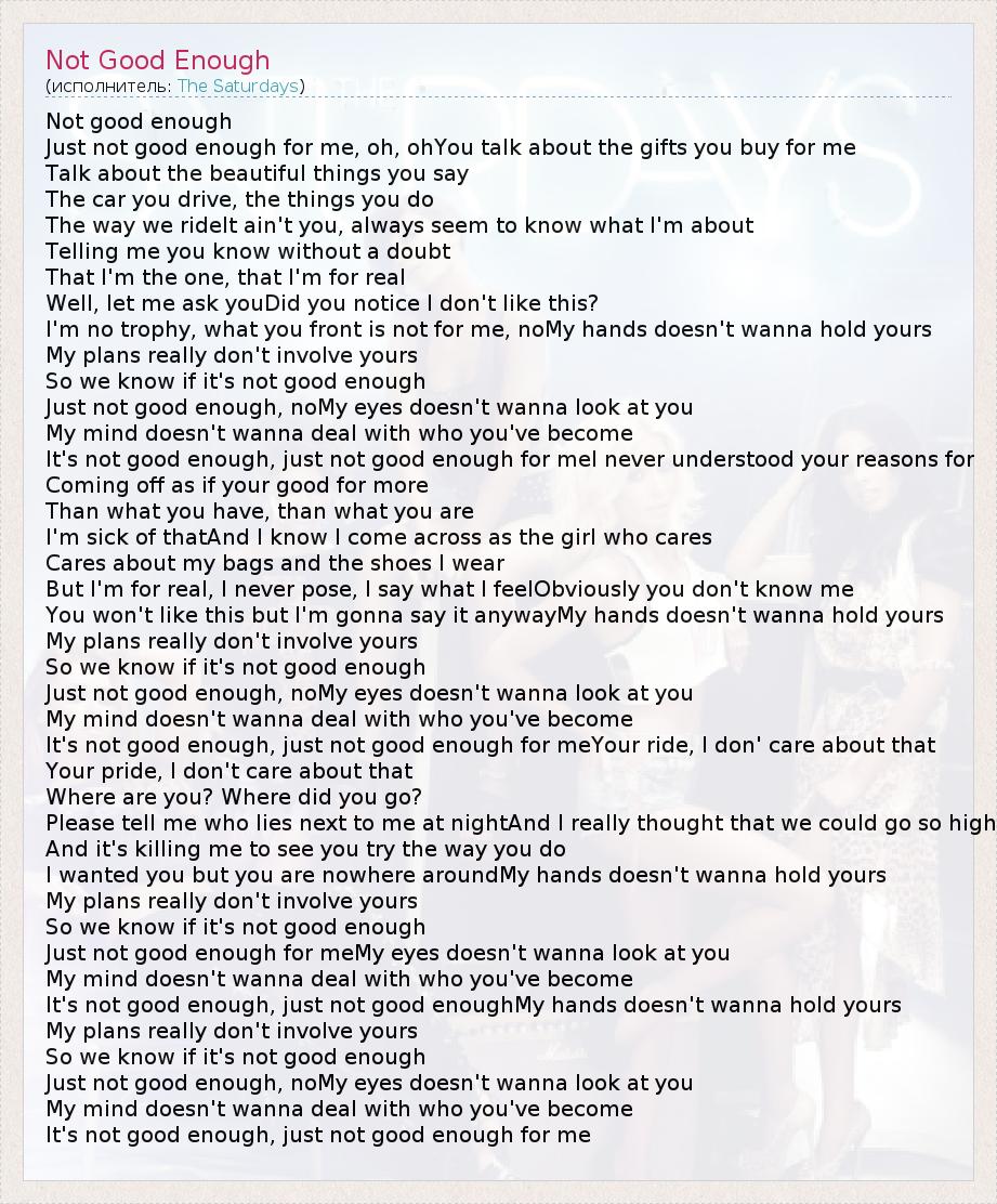 А как ты думаешь, о чем песня "Not Good Enough" ?