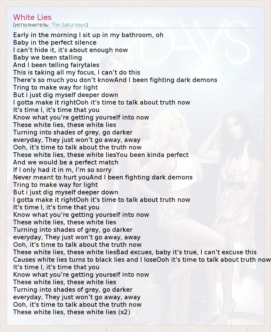 These white lies, these white liesBad excues, baby it's true, I can't excuse this