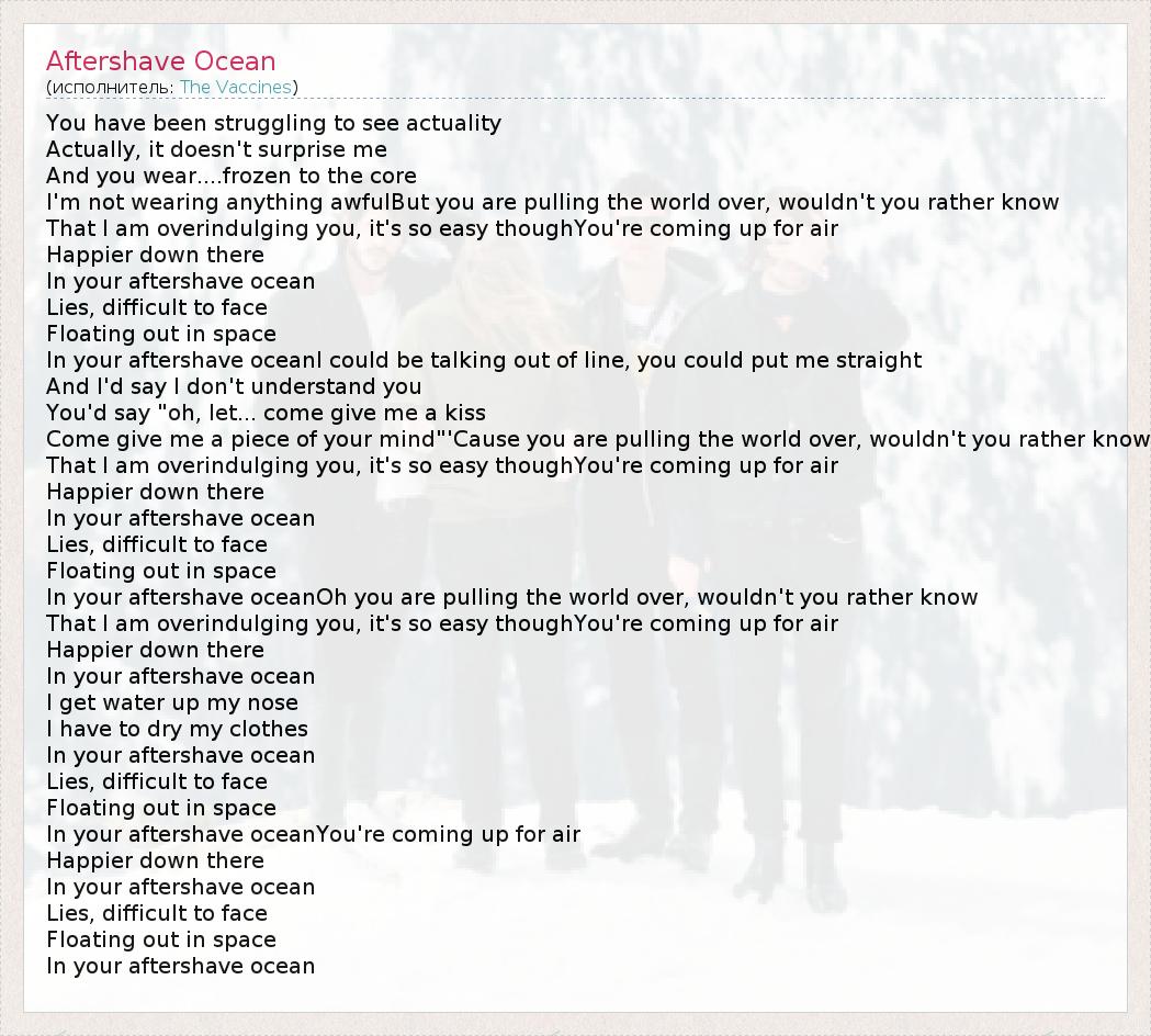 А как ты думаешь, о чем песня "Aftershave Ocean" ?
