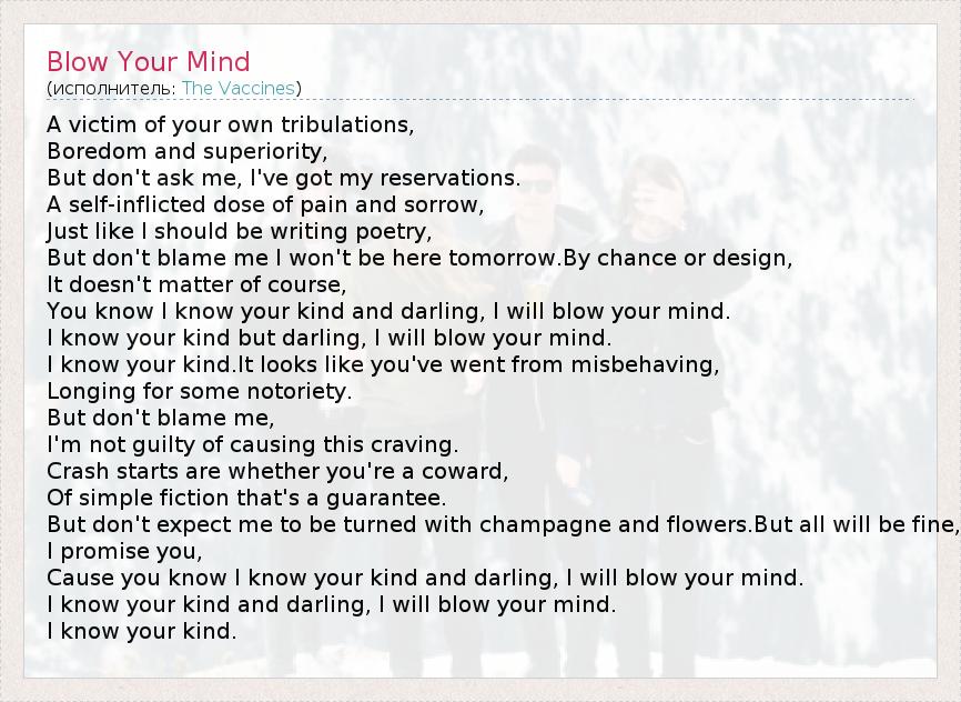 А как ты думаешь, о чем песня "Blow Your Mind" ?