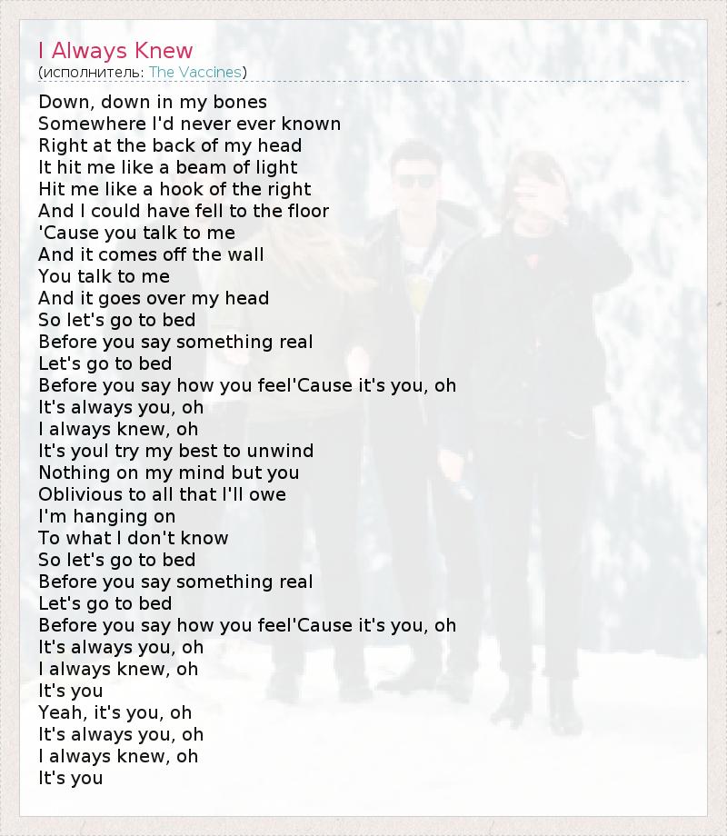 А как ты думаешь, о чем песня "I Always Knew" ?