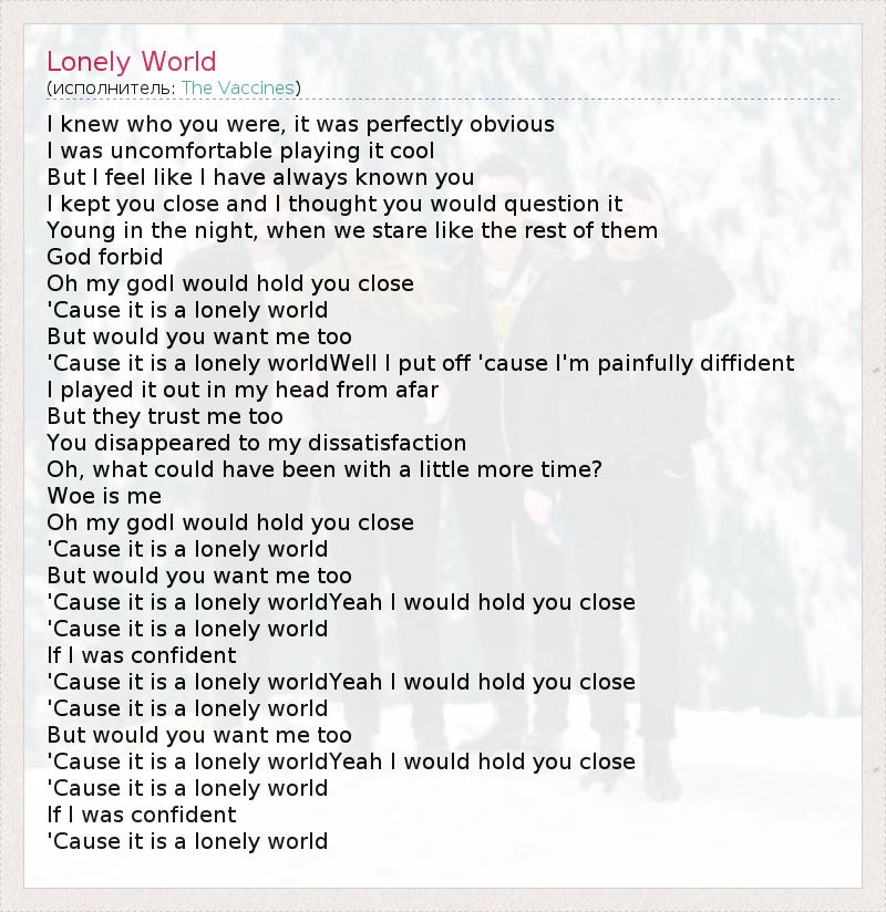 'Cause it is a lonely worldWell I put off 'cause I'm painfully diffident