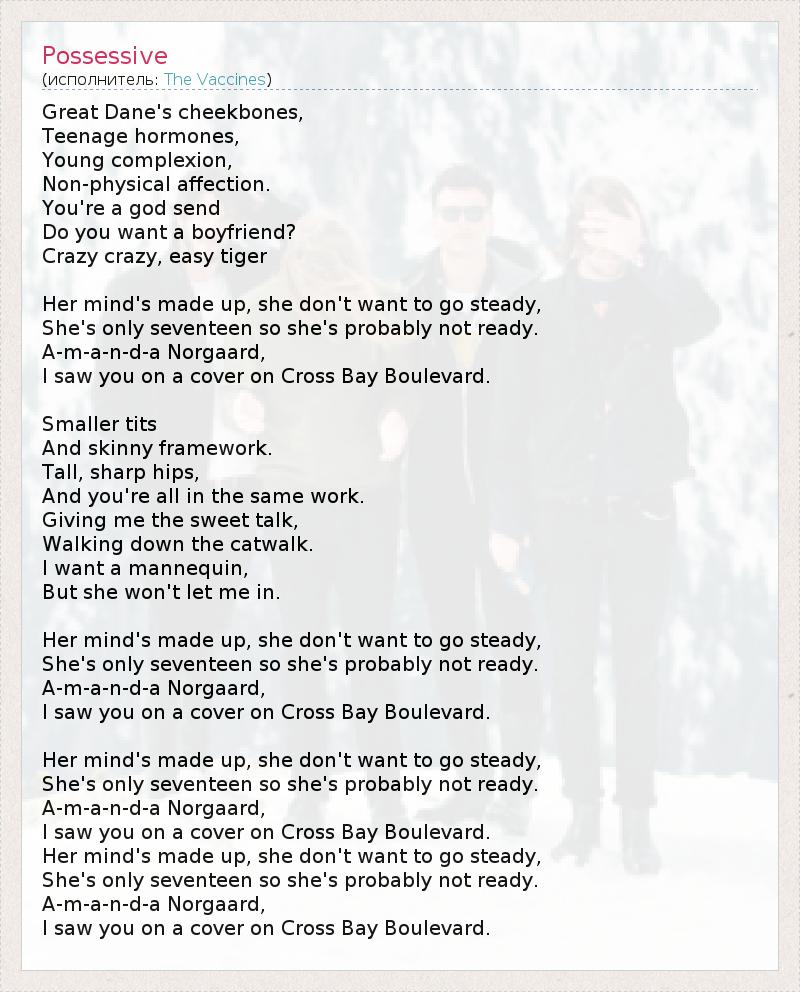 * - На написание этой песни Джастина Янга, фронтмена группы, вдохновила Аманда Норгаард, датская супермодель. Однажды Джастин был на двойном свидании с Амандой, её парнем и собственной подругой.
