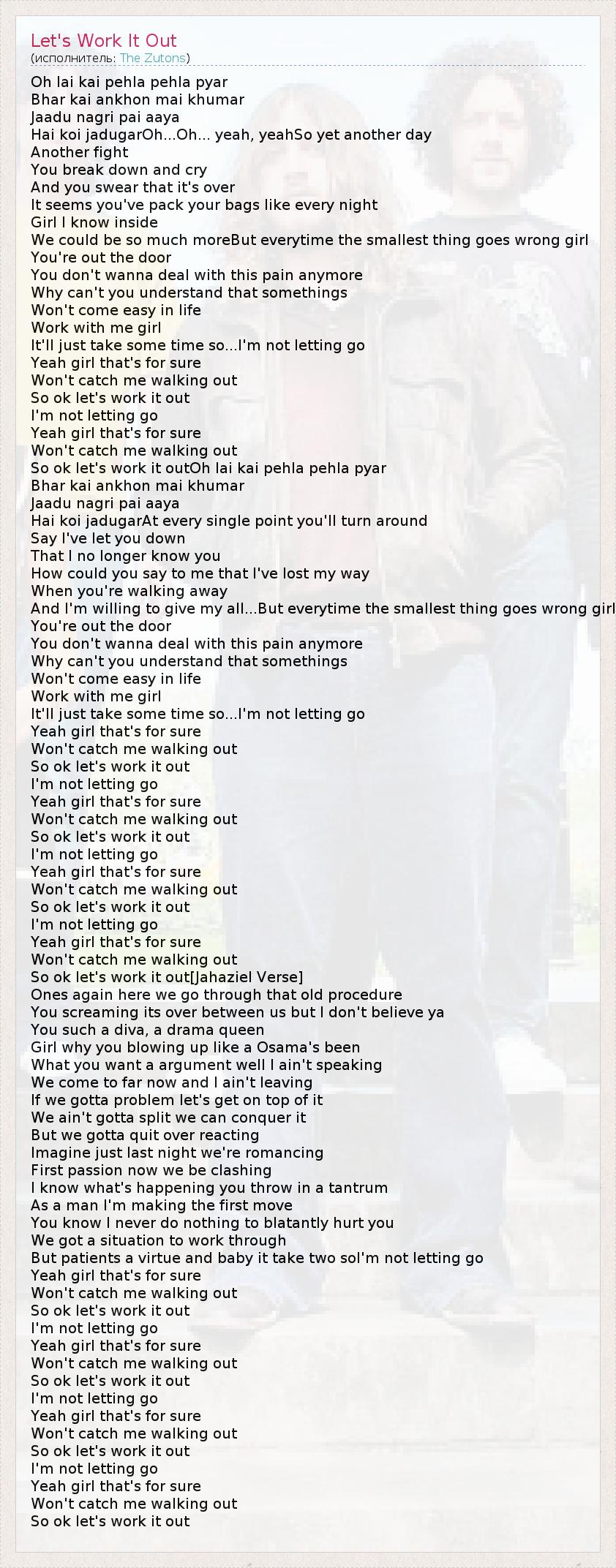 А как ты думаешь, о чем песня "Let's Work It Out" ?